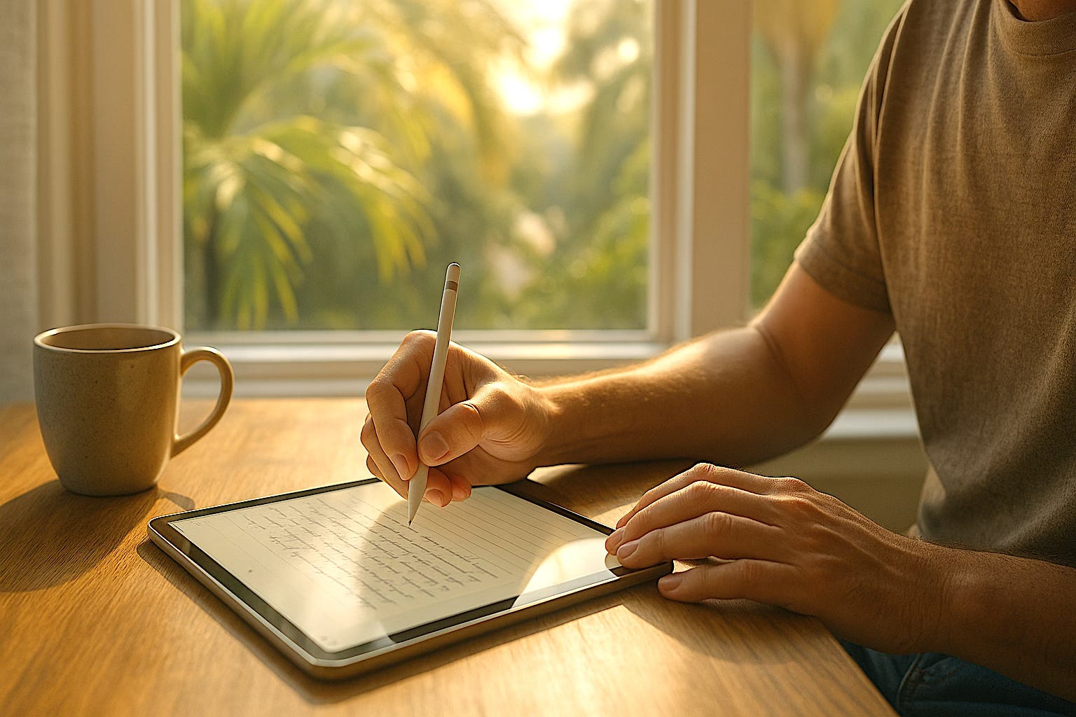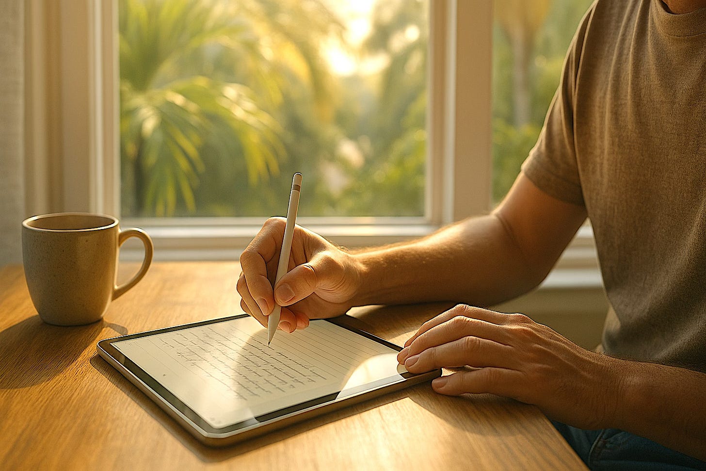 After thirty years of filling notebooks, Iâve settled on an iPad with Apple Pencil and the Goodnotes app with PDF templates. What began as teenage angst in spiral-bound pages evolved through leather journals and fountain pens, eventually landing in the digital realm. Yet the medium matters less than the habit itself. This daily conversation with myself has carried me through career changes, cross-country moves, and lifeâs inevitable storms.